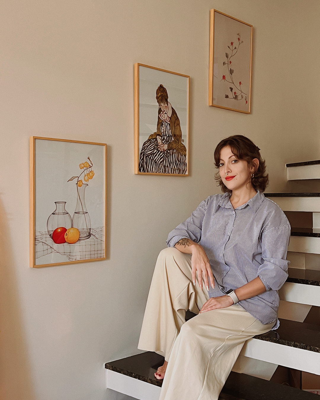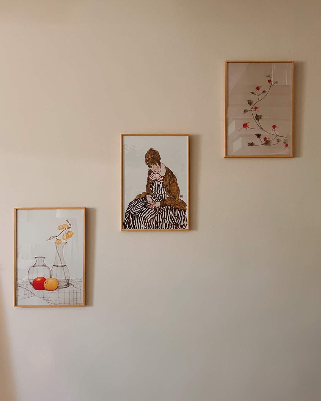 Refreshing, 35x50 cm, Moldura Slim com Vidro Crua Small Red Blossoms On A Vine by Katsushika Hokusai, 35x50 cm, Moldura Slim com Vidro Crua Edith with Striped Dress, Sitting by Egon Schiele, 35x50 cm, Moldura Slim com Vidro Crua