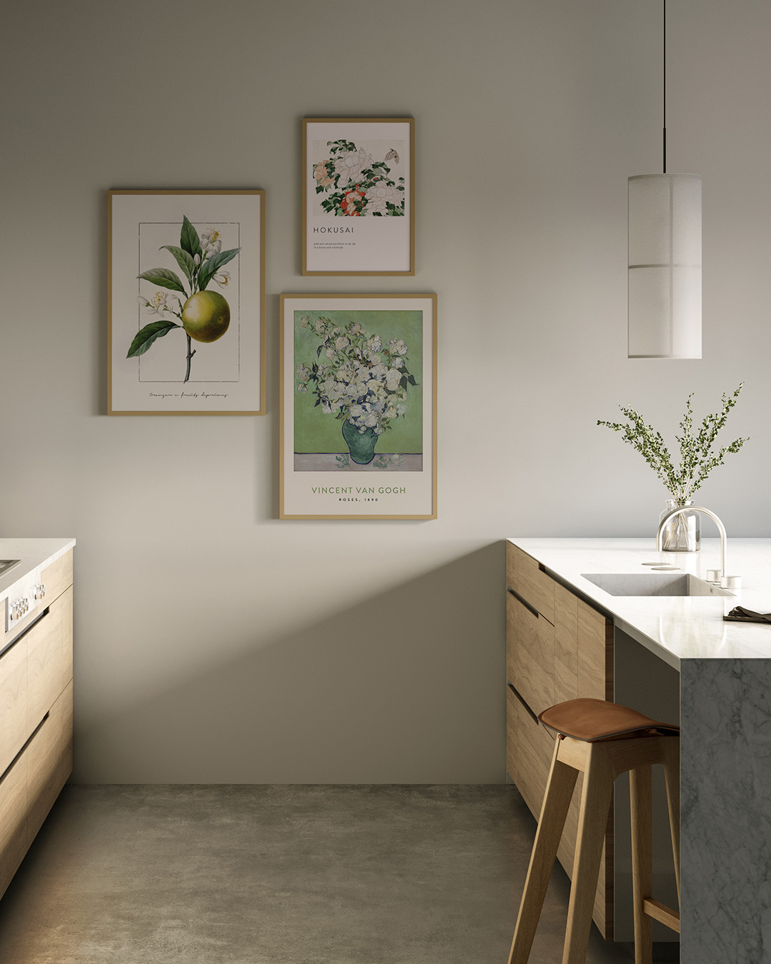 Peonies and Butterfly by Hokusai, 35x50 cm, Moldura Premium com Vidro Crua Laranjeira, 50x70 cm, Moldura Premium com Vidro Crua Roses by Van Gogh, 50x70 cm, Moldura Premium com Vidro Crua