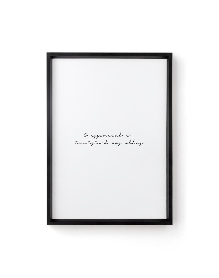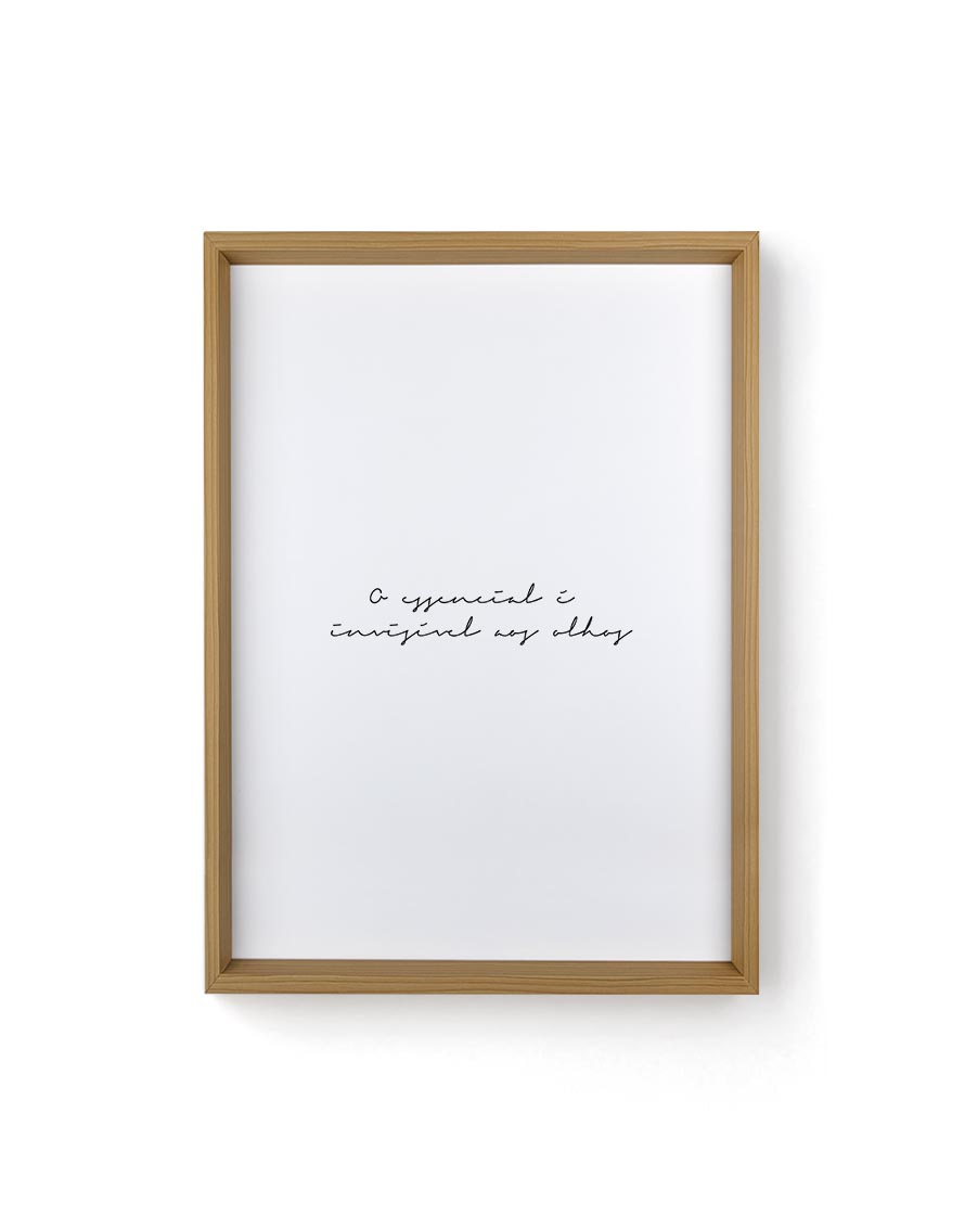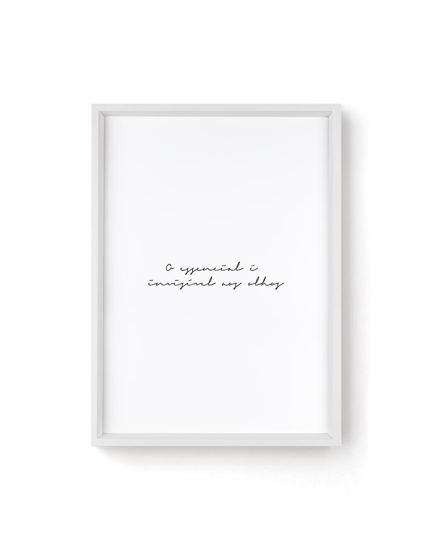 O quadro decorativo O Essencial é Invisível aos Olhos tem design único, impressão e molduras em alta qualidade. É a peça perfeita para compor a decoração da sua sala estar, sala de jantar, quarto ou escritório. Você também pode fazer uma composição com outras artes e criar a sua própria gallery wall. Transforme seus ambientes com arte e personalidade.