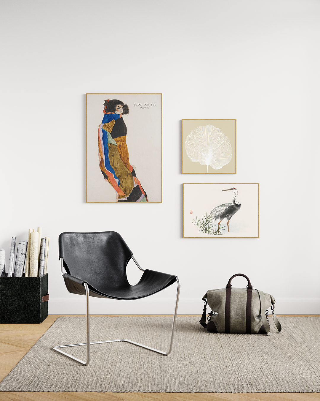 Moa by Egon Schiele, 50x70 cm, Moldura Slim com Vidro Crua Crane by Kōno Bairei, 35x50 cm, Moldura Slim com Vidro Crua Palmeira Leque, 30x30 cm, Moldura Slim com Vidro Crua